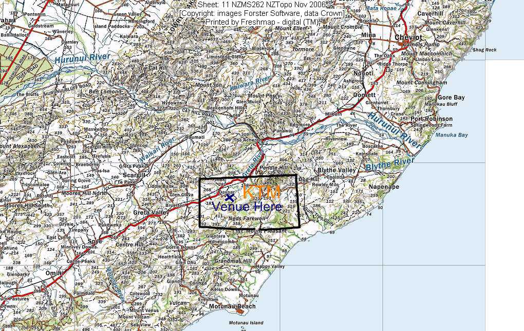 Sign posted 7km North of Greta Valley on State Highway 1 North Canterbury. Allow 20min from Cheviot to race venue.