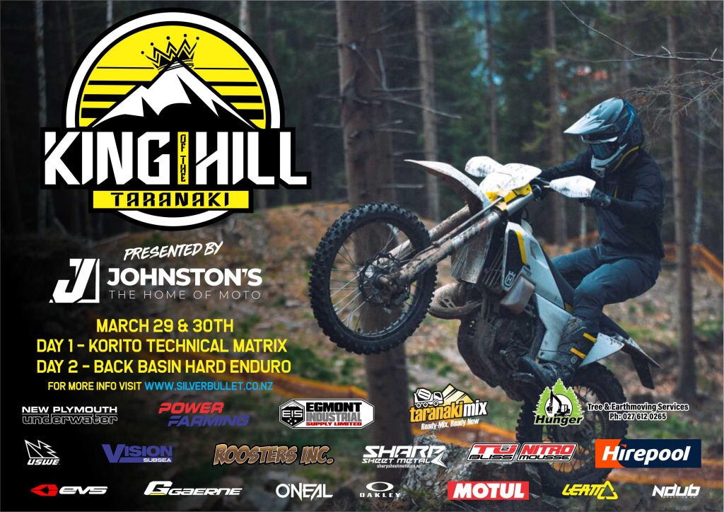 As Taranaki has now been allocated part of the MNZ Hard Enduro series, we decided to move the KTM event to a Saturday (29th March) and on the 2nd day a 'no way in hell' format style race will be run at a Urenui location (North Taranaki) .