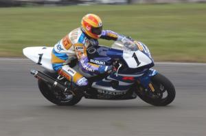 Race one of the Suzuki NZ Superbike class saw a four way battle develop between, defending Champion, Hamilton’s Andrew Stroud (Suzuki), Whakatane’s Tony Rees (Yamaha), Tauranga’s Dean Fulton (Honda) and ex-pat (Wellington) Bruce Anstey, home for the Summer Series from the UK, on another Suzuki. The lead changed several times with Stroud taking the win by a couple of bike lengths from Rees.