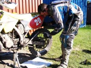 You will have read the previous article about Shaun Prescott and Sean Clarke having major problems. Prescott is definitely out – the borrowed KTM didn’t make the distance so that leaves the Senior Team out of contention. Shaun is not too pleased about this as he worked hard to get the bike to Parc Ferme. As for Sean Clarke: Sean has spent the evening with ice packs on his damaged shoulder. Sean is one of the last hard men and if it is at all possible to ride, he will be on the line kicking his Suzuki into life. This morning Sean is in a lot of pain but intends to start the event and see how far he can go.