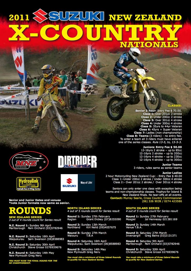 The 2011 Suzuki New Zealand Cross Country Nationals Kick off with both the North and South Island Championships starting on 27th February.