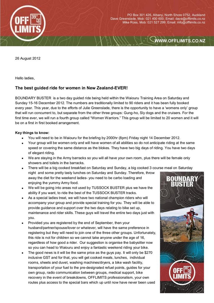Women's Only Boundary Buster