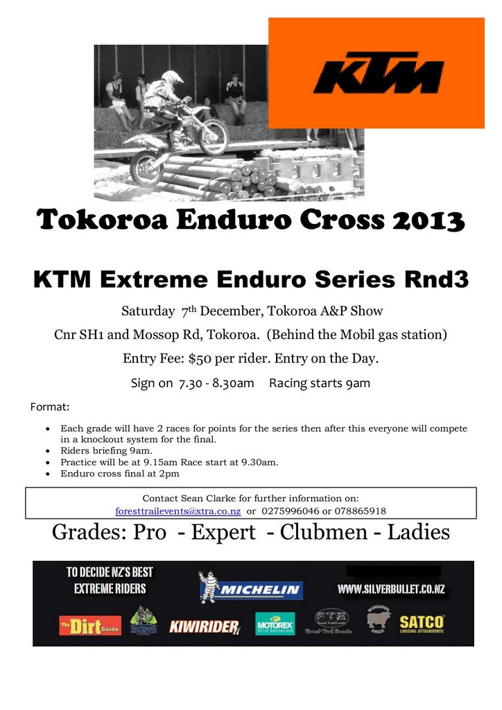 The Tokoroa Enduro Cross is the third of five rounds of the 2013/14 KTM Extreme Enduro Series