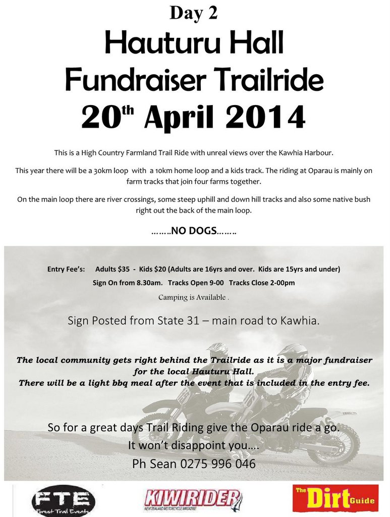 Sun 20th: Hauturu Hall Fundraiser Trailride. 9am-2.00pm (enter on day)