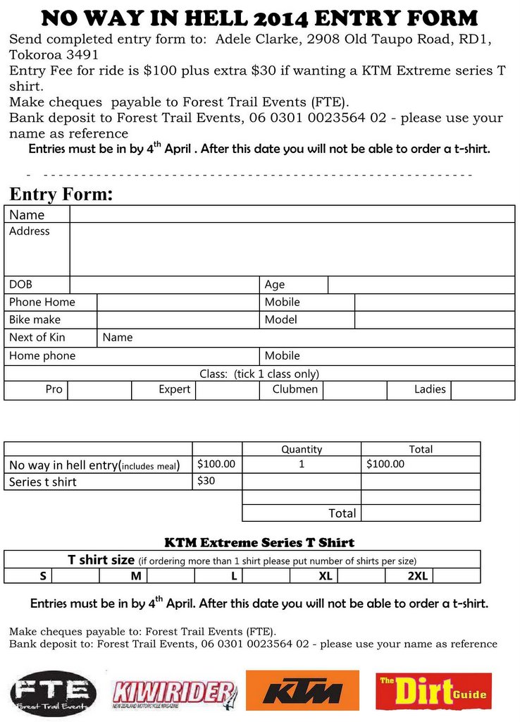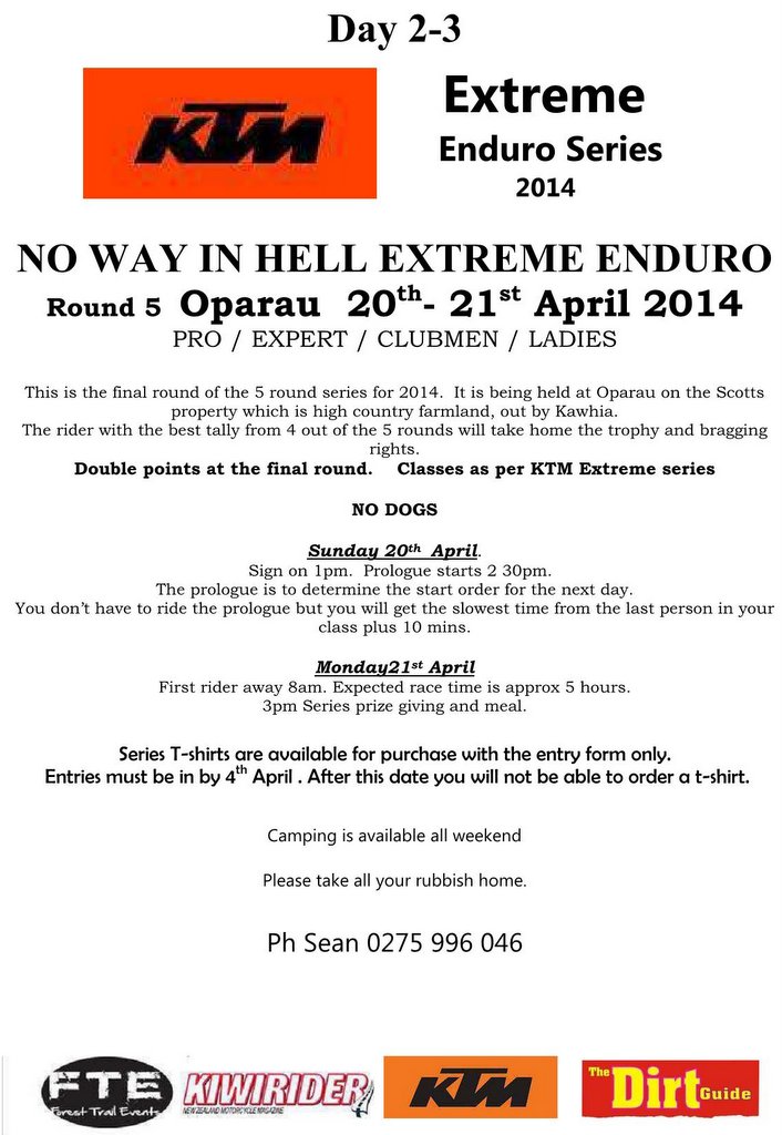 Mon 21st: No Way in Hell Extreme Enduro. NZ’s No.1 Extreme Enduro. (pre entry, download entry form)